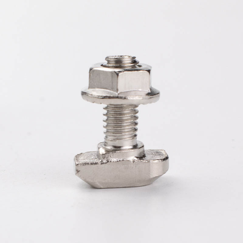 ГлаваМ5 Т Вијакје т-у облику. Може се директно сместити у утор алуминијумског профила. Током инсталације може се аутоматски позивати и закључати, без потребе да се више пута подеси положај попут других вијака, штедећи време инсталације и труда.