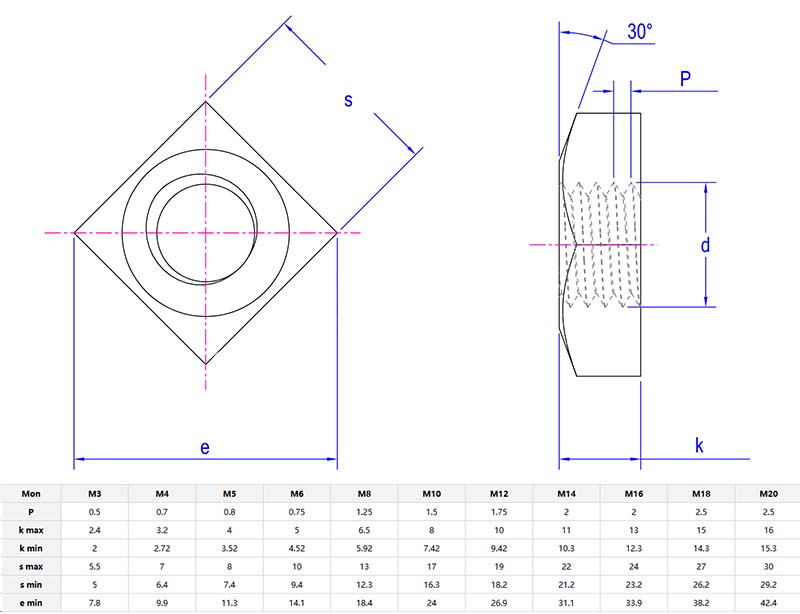 У производњи полувремених квадратних ораси, бират ћемо специфичан степен оловног месинга, нехрђајућег челика или осталих материјала. Обрадом жица за обраду жица, сировине су прецизно обликовани у квадратне матице. Након тога се врши низ деликатних процеса за обраду.