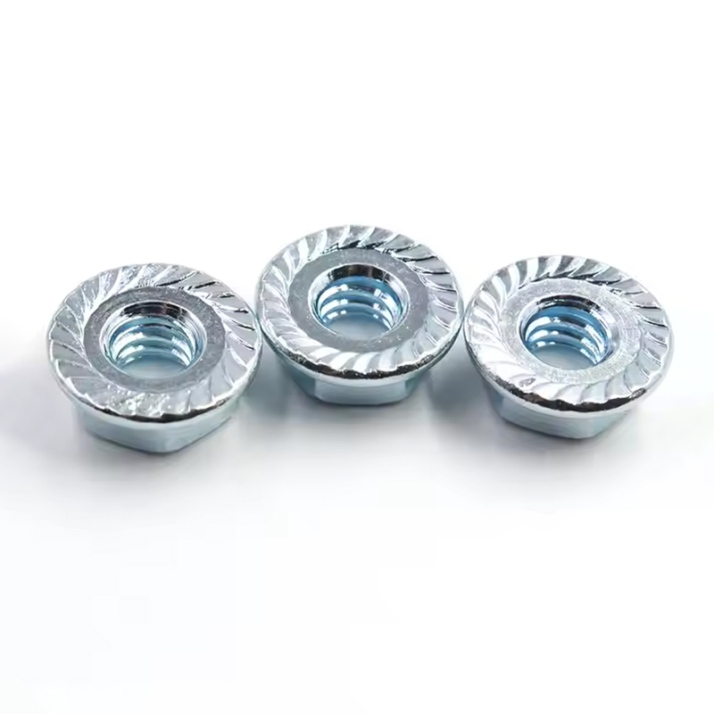 Прирубница на днуКинковска матица шестерокутна прирубницаима зубе на својој површини. Ови зуби могу повећати трење површином повезаних делова приликом затезања, ефективно спречавајући да се матица ефикасно користи и обично се користе у окружењу вибрација или наврата који захтевају стабилне везе, као што је потребно стабилно повезивање, као што је потребно стабилно повезивање.